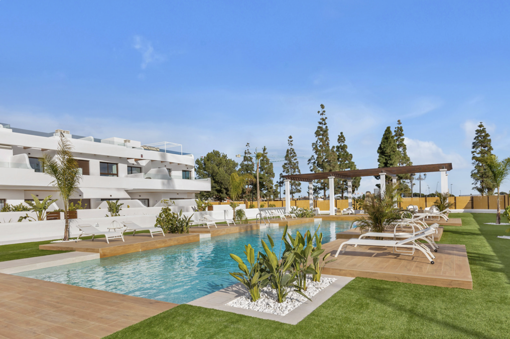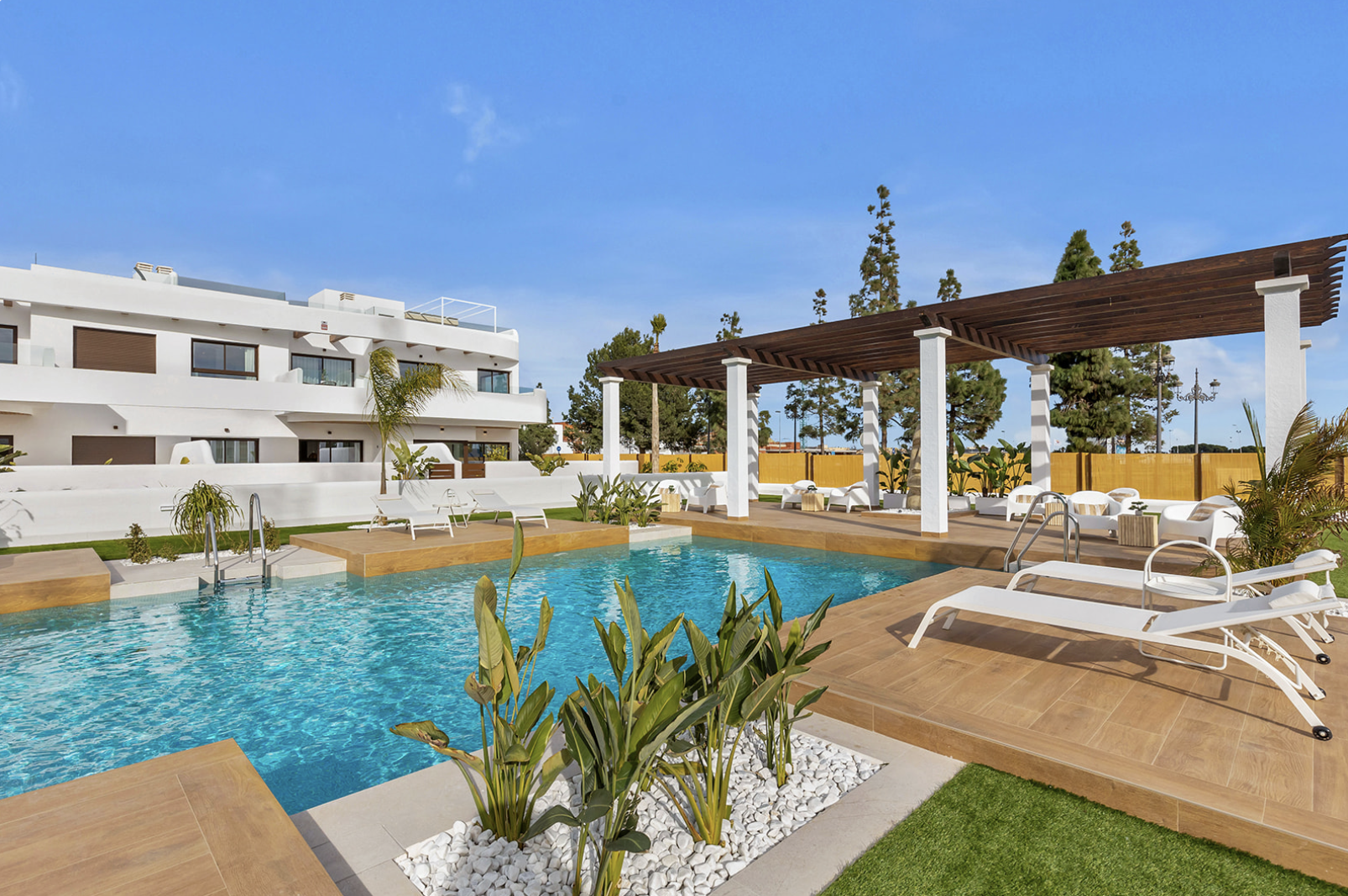 Het wooncomplex beschikt daarnaast over een ruim gemeenschappelijk zwembad, perfect om af te koelen tijdens warme zomerdagen en om te genieten van een ontspannen levensstijl aan de Costa Cálida.