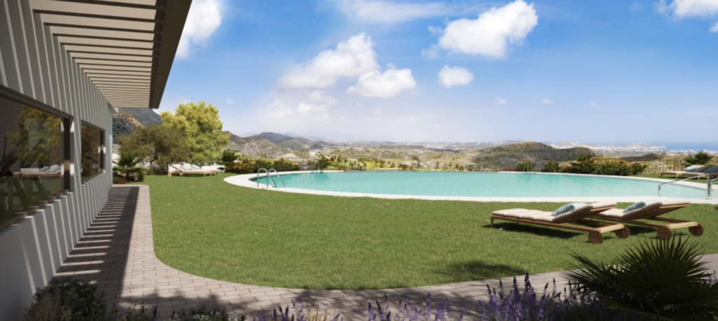 Het exterieur van dit residentieel is ontworpen om de natuurlijke omgeving te complementeren en een uitzonderlijke buitenleefruimte te bieden. Woningen op de begane grond hebben privéterrassen, ideaal om te ontspannen of buitenbijeenkomsten te organiseren. Het uitzicht op zee voegt een speciaal tintje toe, waardoor bewoners kunnen genieten van prachtige zonsopgangen en zonsondergangen. De nabijheid van de zee (slechts 4 km) biedt gemakkelijke toegang tot lokale stranden voor kustwandelingen en wateractiviteiten. De architectuur integreert harmonieus met het landschap, wat bijdraagt aan een serene en gastvrije sfeer en uitnodigt om het mediterrane klimaat het hele jaar door te beleven.